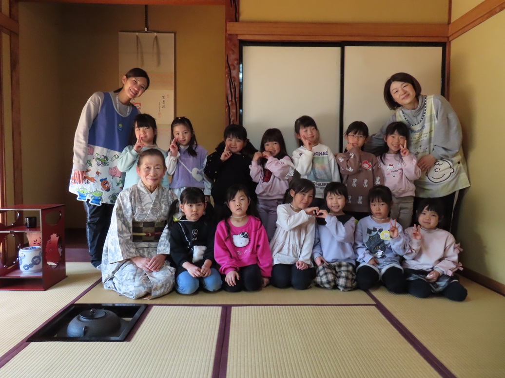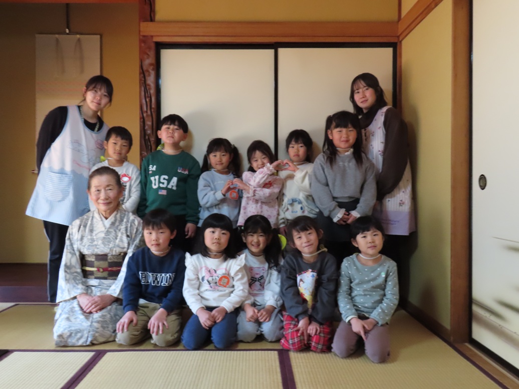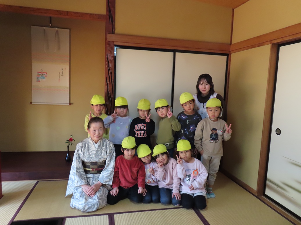 伝統芸能「獅子舞」「南京玉すだれ」を楽しみました。獅子舞は邪気払い、疫病退散のために行う正月の縁起物です。5歳児クラスは「南京玉すだれ」の体験もしました。やり方を教えてもらい形が作れたときに「できた~」「やったあ」の声が響いていました。