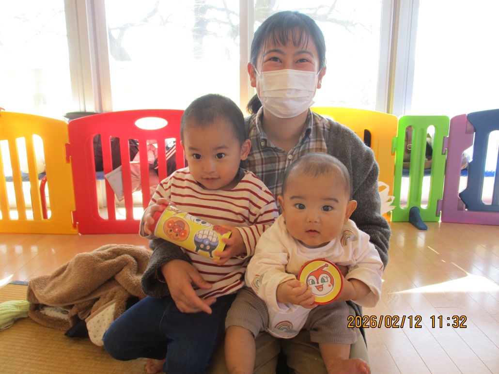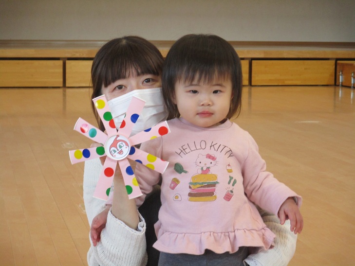 今回のまえばし赤城で遊ぼうはとても風の強い中お友達が来てくれました。大人は寒くて中に入りたかったけど子どもたちは元気いっぱいふわふわドームで遊んでいました。たくさん遊んだ後は屋内でおやつを食べて遊びました。