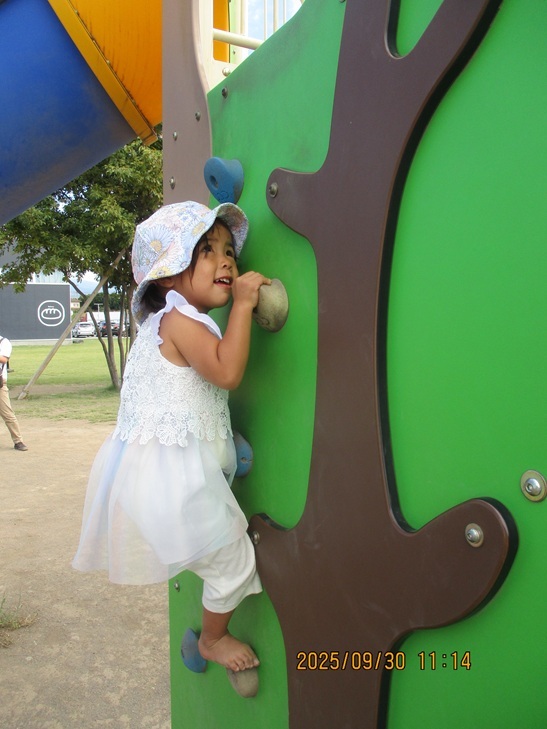 お天気もよく、さわやかな風を浴びつつ、ふわふわドームや滑り台でいっぱい遊んだよ