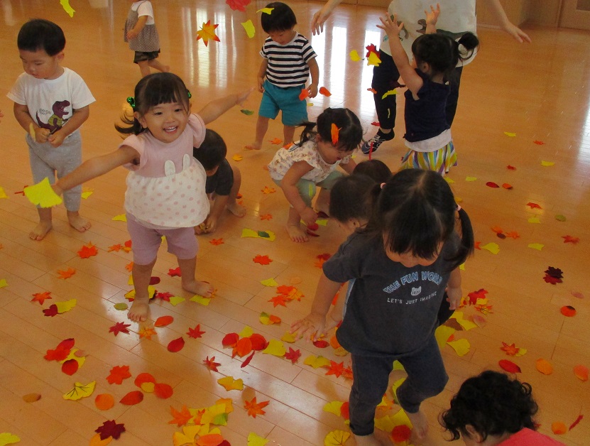 秋を感じるテーマでリトミックを楽しみました。ピアノに合わせて時間いっぱい楽しく過ごしました。