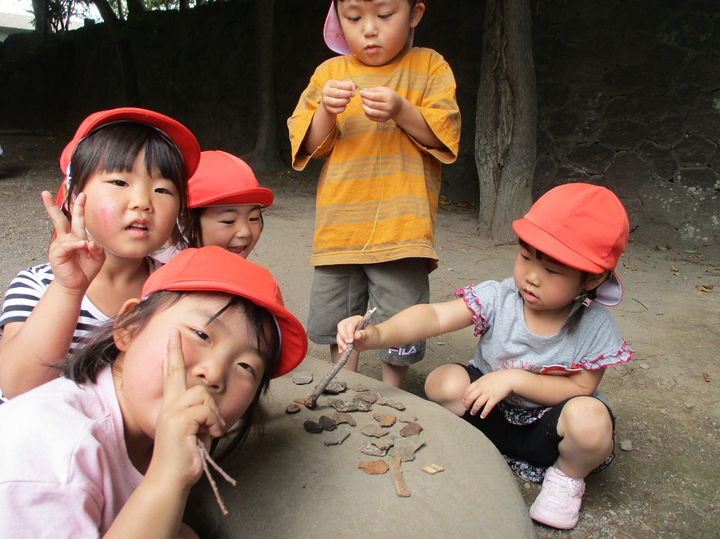 半田駄菓子店の開店です♪ウッディーの門をくぐったら先生たちが「いらっしゃいませ~。」とお出迎え。どのお店も紙のお金を払ってゲームをしてからお菓子が買えるのです。全部のお店に行きたいけど使えるお金が決まっているから、ちょっと悩んだよぉ~。