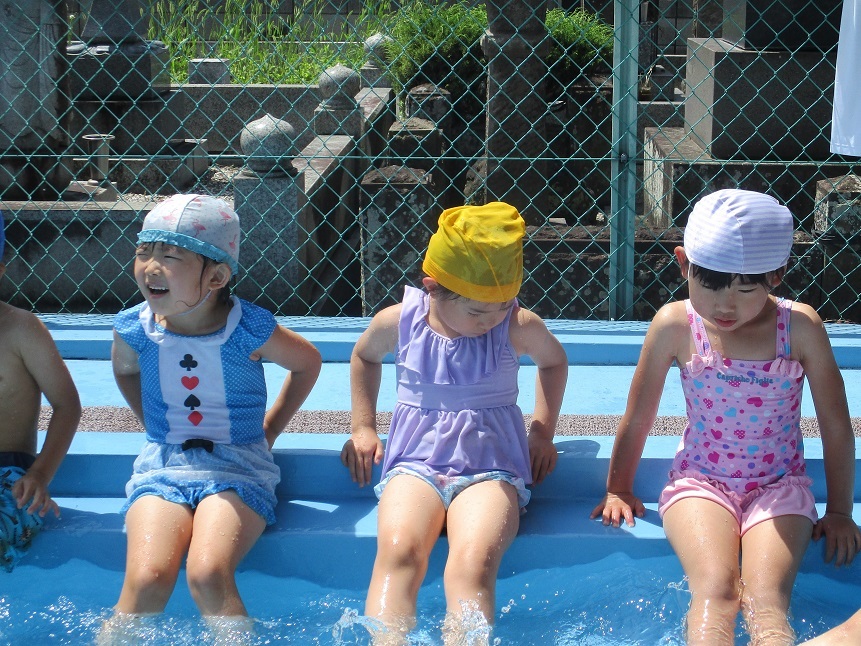 園のプールにお湯をはって入浴をしました。シャンプーもみんな上手にできるので感心しました。目に入っても平気だったね。湯船の中は気持ちよさそう。「そろそろ出ますよ」と声をかけると「えー!もっと!」と名残惜しそうでしたよ。