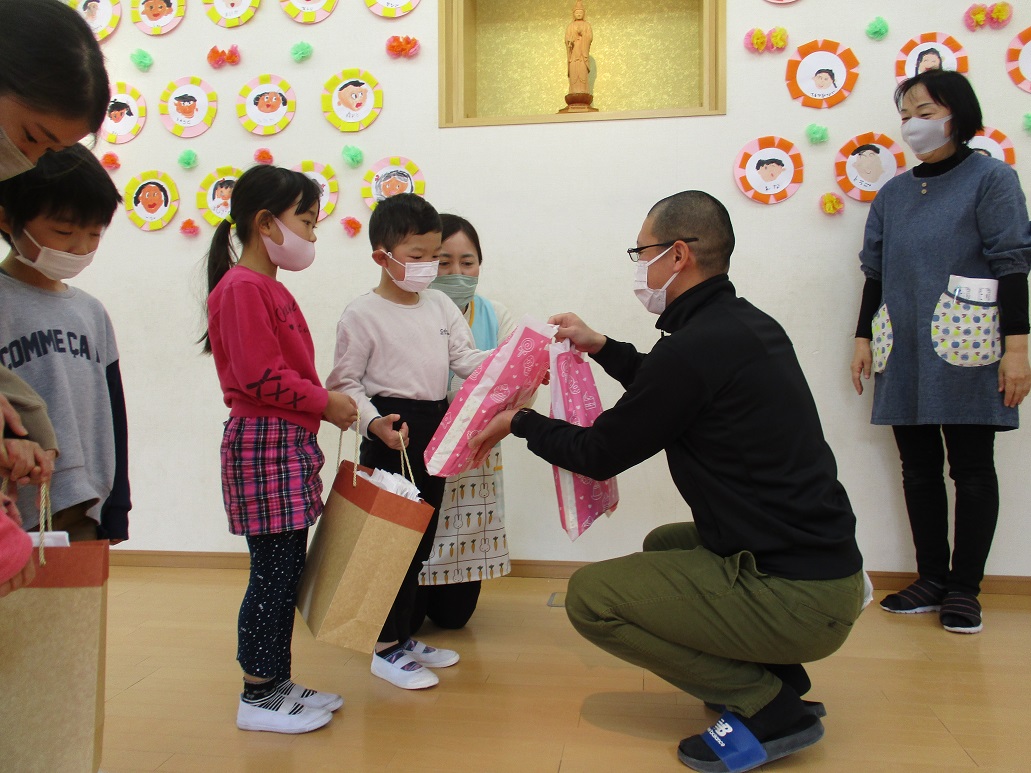 今日は、今までたくさん遊んでもらった年長組さんとのお別れ会でした。各学年ごとに踊りや歌のプレゼントや先生たちのおもしろクイズやプレゼント交換、美味しい完全給食・・・とっても素敵な時間を過ごせました。「年長組さんいままでありがとうございました。」