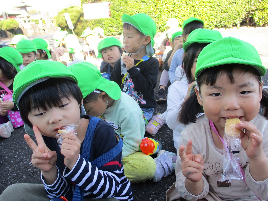 園の近くの早尾神社までお詣りに行きました。手作りの千歳飴の袋をもって・・ハイチーズ‼元気にすくすく大きくなりますように・・