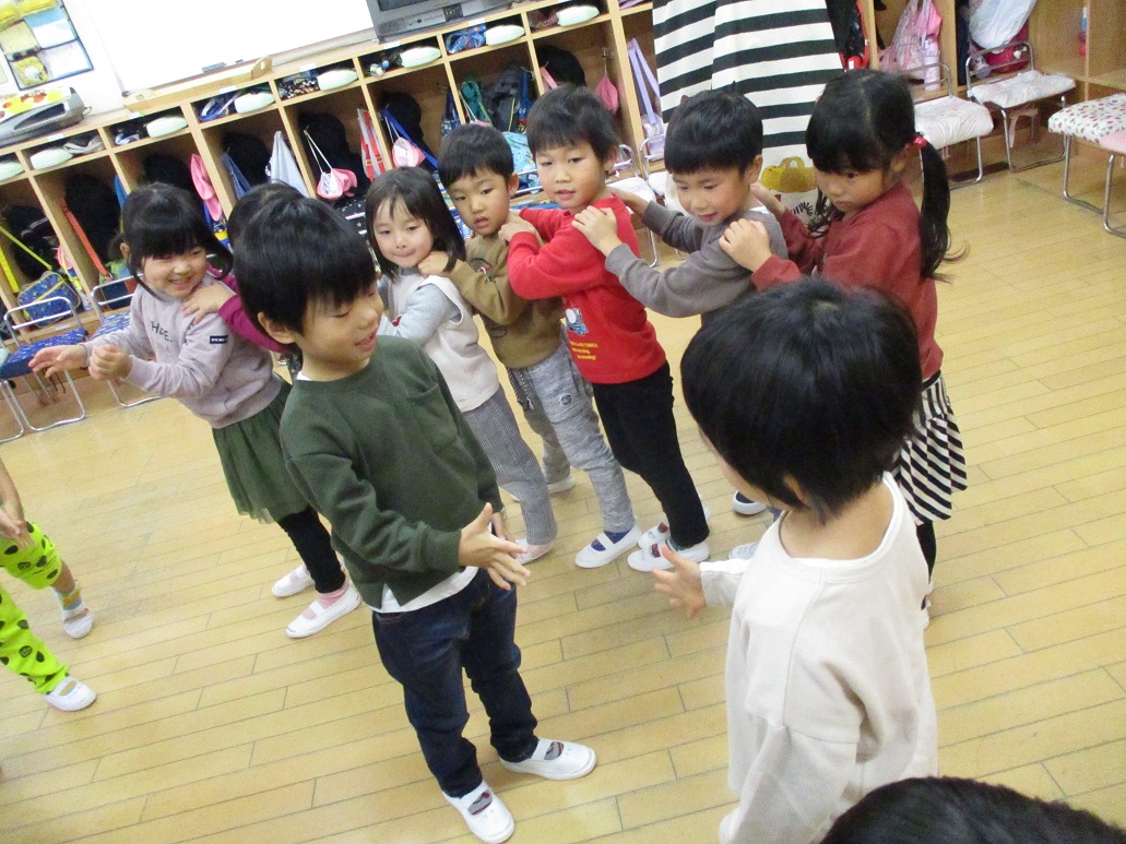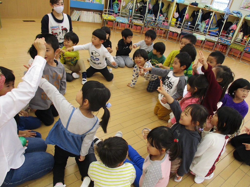 12月は、サンタさんのお話を聞きました。プレゼント何がもらえるのかなぁ?今から楽しみです。ベルの音、心地よかったです♪