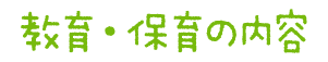 具体的な教育・保育内容については「認定こども園教育・保育要領」を踏まえ、子どもの発達課題、特性、地域環境を考慮し、全体的な計画をもとに年齢別年間指導計画・月間指導計画・週案・日案を立て、計画的な教育・保育を実施します。