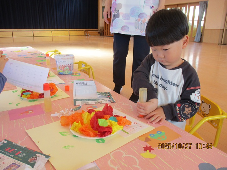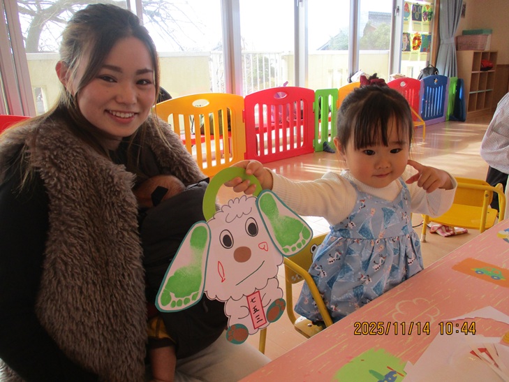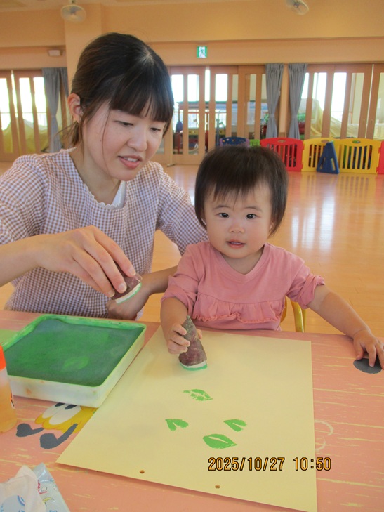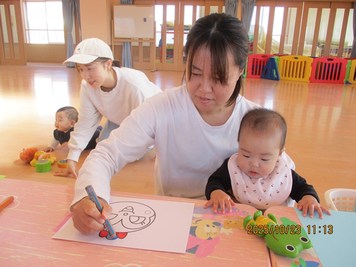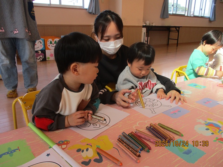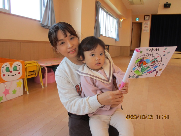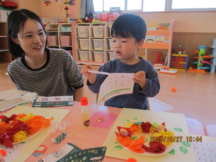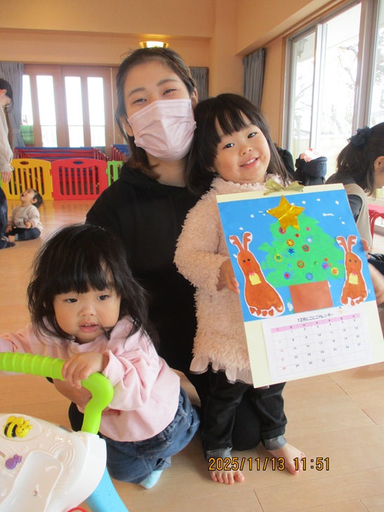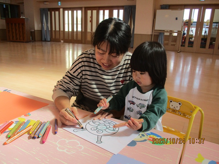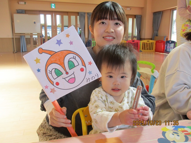 ちょっと前まで、赤ちゃんだったお友達もお兄ちゃんやママが製作しているのを一緒にやってみたいなあって、のぞき込んでみたり、おもちゃで遊んで待っていられるようになりました。いつか一緒に作ろうね。