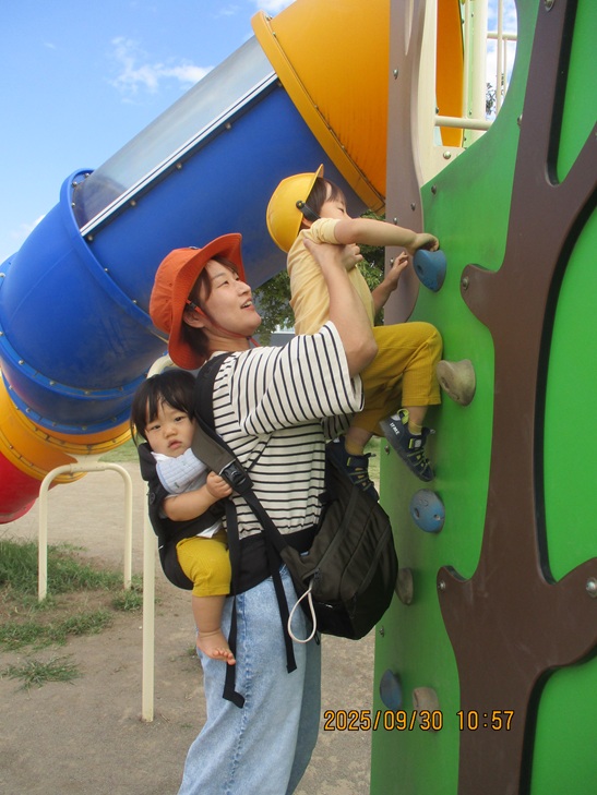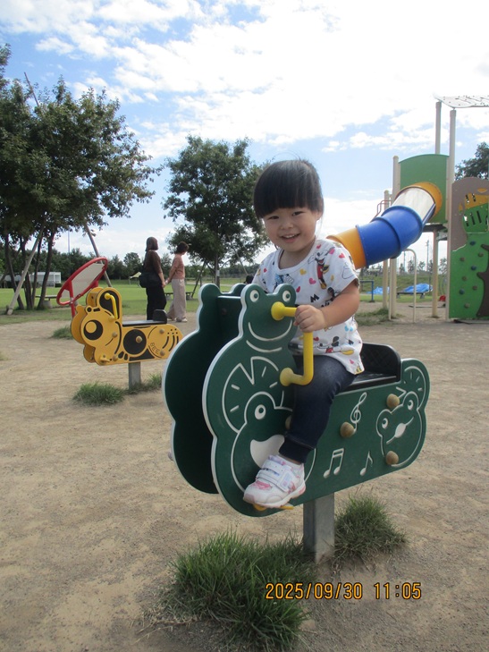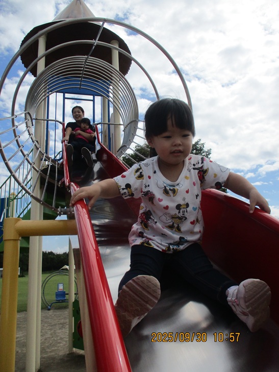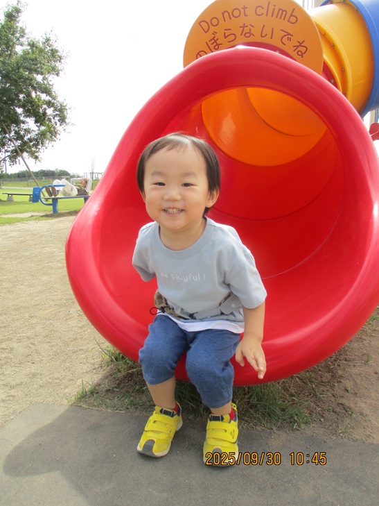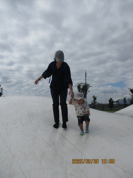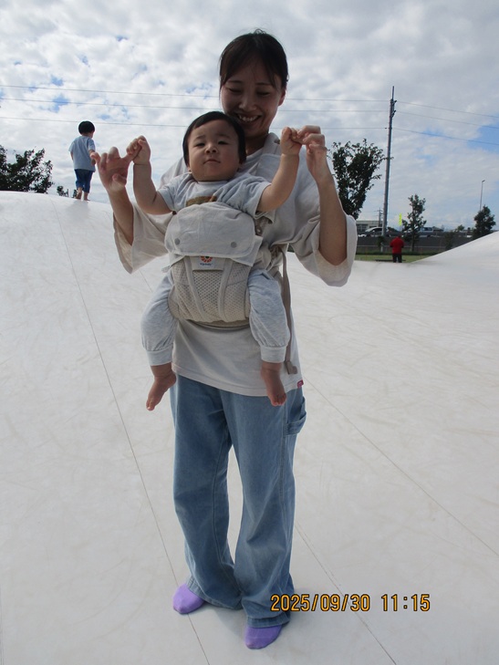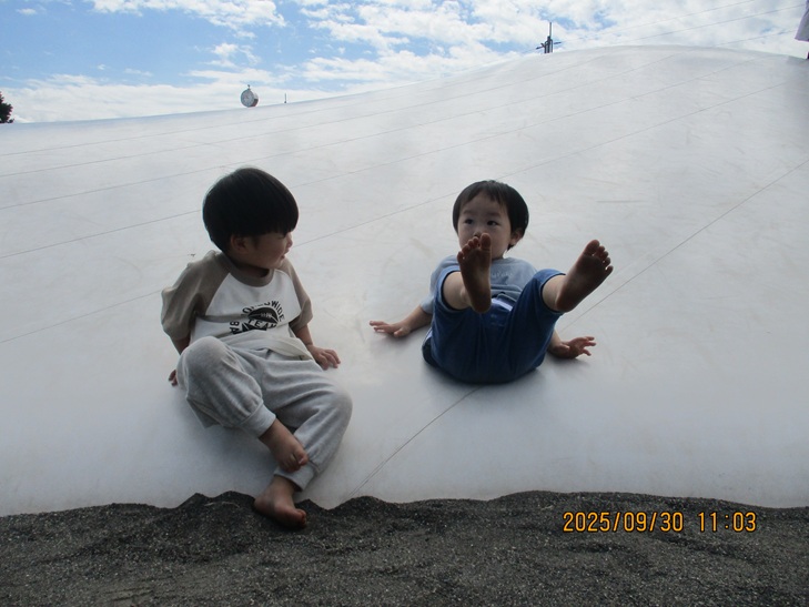 お天気もよく、さわやかな風を浴びつつ、ふわふわドームや滑り台でいっぱい遊んだよ