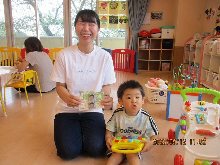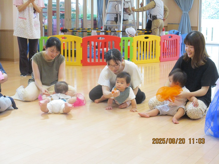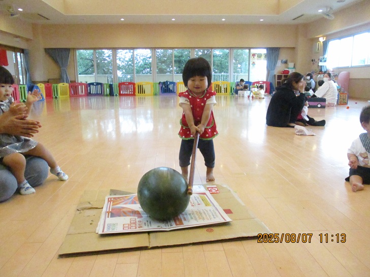 18日(金)ににこにこランド納涼祭がありました。わなげやボーリング魚釣りゲームをしたり、お兄さんお姉さんとジャンボリーミッキーを踊りました♪