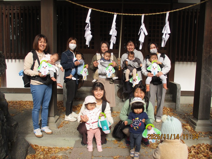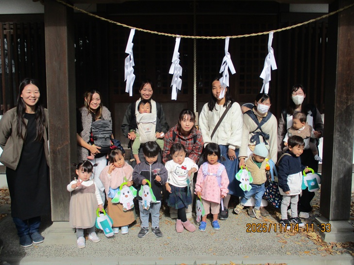 今日は七五三。元気で大きくなりますようにと願いを込めて飴袋を作りました。完成したら、皆で早尾神社までお参りに行きました。