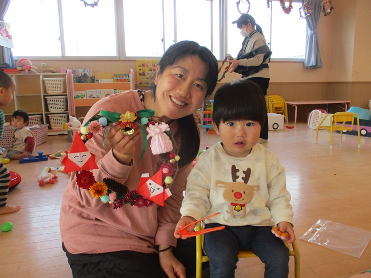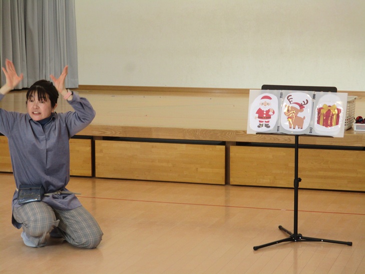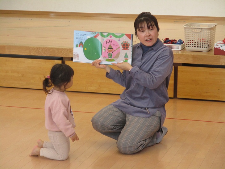 今回はクリスマスにちなんだ絵本や歌♪で楽しみました。大きなプレゼントの箱にみんな興味津々★サンタさんからの素敵なプレゼントが届きました。今年最後のリトミックでした。また来年をお楽しみに。