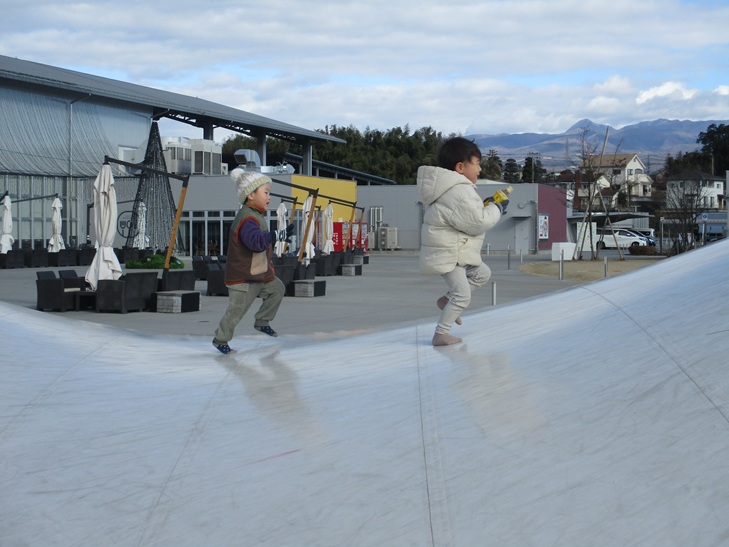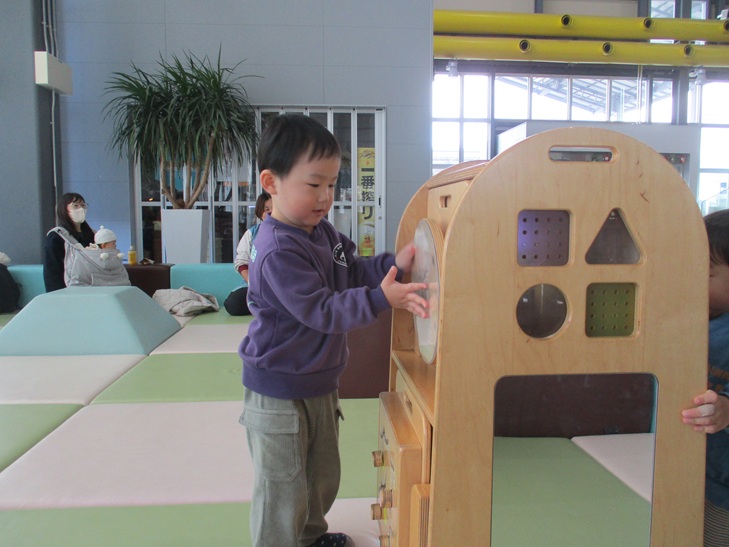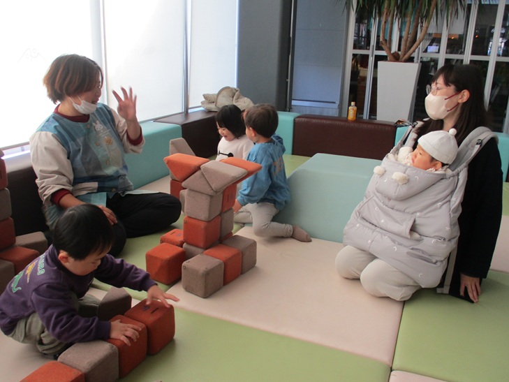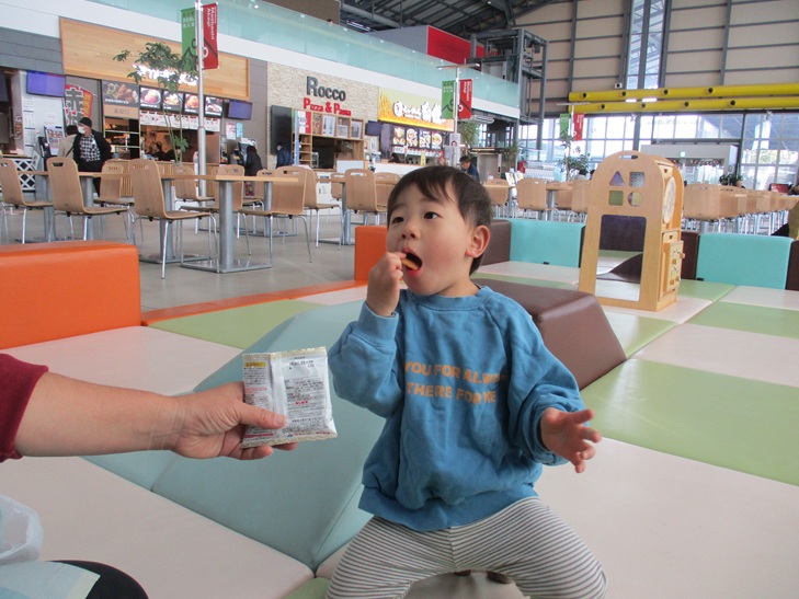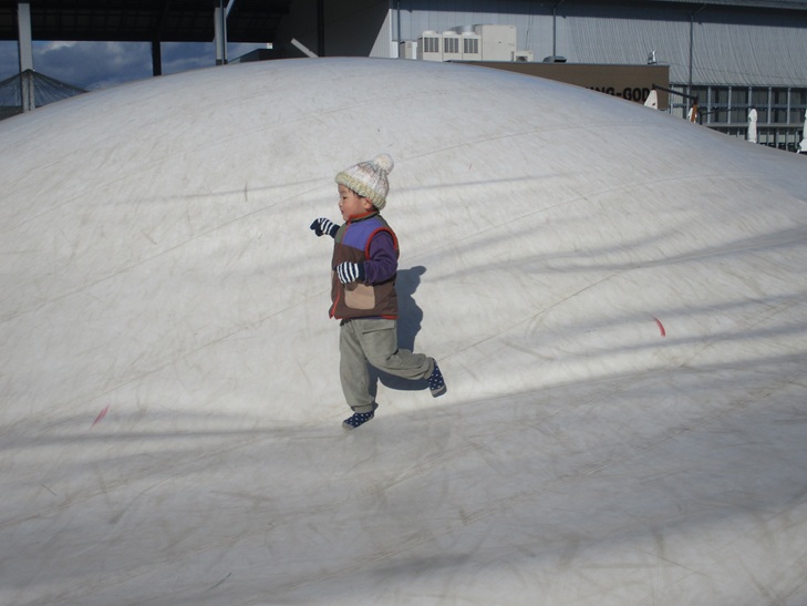 今回のまえばし赤城で遊ぼうはとても風の強い中お友達が来てくれました。大人は寒くて中に入りたかったけど子どもたちは元気いっぱいふわふわドームで遊んでいました。たくさん遊んだ後は屋内でおやつを食べて遊びました。